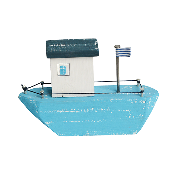 Επιτραπέζιο Διακοσμητικό – Καραβάκι ξύλινο γαλάζιο, ελληνικής κατασκευής.