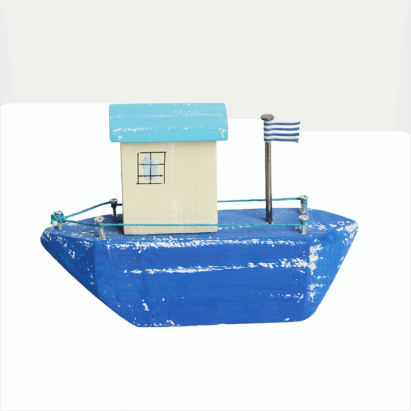 Επιτραπέζιο Διακοσμητικό – Καραβάκι ξύλινο μπλε, ελληνικής κατασκευής.