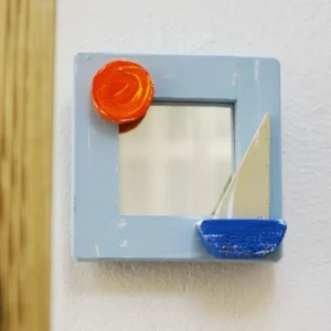 Πέρα από την πρακτική του χρήση ως καθρέφτης, αποτελεί ένα διακοσμητικό αντικείμενο που μπορεί να φωτίσει κάθε χώρο και να προσδώσει προσωπικότητα στον τοίχο σας. Το σχέδιο με τα σπιτάκια και τις πεταλούδες φέρνει μια παιχνιδιάρικη και θετική αίσθηση, ιδανική για σαλόνι, παιδικό δωμάτιο, διάδρομο ή γραφείο, ενώ οι λεπτομέρειες της χειροποίητης κατασκευής προσθέτουν ζεστασιά και μοναδικότητα σε κάθε κομμάτι.